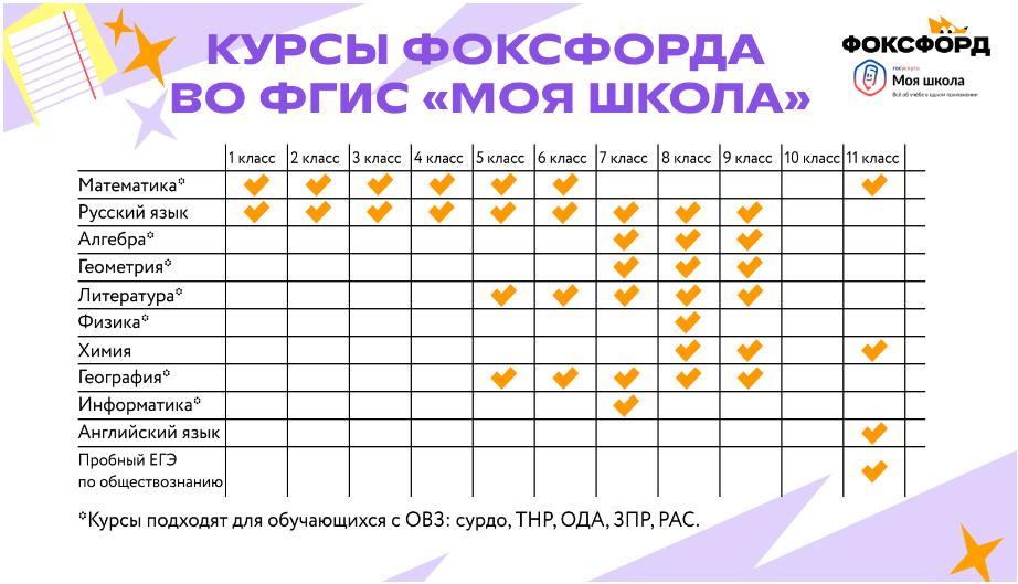 С 1 сентября 2025 года в Универсальной библиотеке цифрового образовательного контента (ФГИС «Моя школа») для вас бесплатно доступны курсы онлайн-школы «Фоксфорд» по 12 предметам школьной программы с 1 по 11 класс.